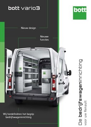 Bott bedrijfswageninrichting speciaal voor Renault bedrijfswagens. De componenten van het Bott vario systeem zijn qua afmetingen en bevestigingspunten precies afgestemd op de bedrijfswagens van Renault. Dit heeft als resultaat een zo efficiënt mogelijk gebruik van de beschikbare ruimte, een veilige montage en eenvoudige demontage.